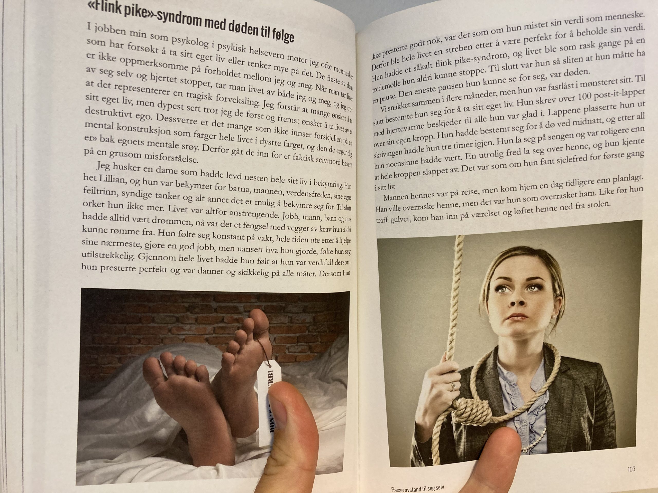 I jobben min som psykolog i psykisk helsevern møter jeg ofte mennesker som har forsøkt å ta sitt eget liv eller tenker mye på det. De fleste av dem er ikke oppmerksomme på forholdet mellom jeg og meg. Når man tar livet av seg selv og hjertet stopper, tar man livet av både jeg og meg, og jeg tror at det representerer en tragisk forveksling. Jeg forstår at mange ønsker å ta sitt eget liv, men dypest sett tror jeg de først og fremst ønsker å ta livet av et destruktivt ego. Dessverre er det mange som ikke innser forskjellen på en mental konstruksjon som farger hele livet i dystre farger, og den de «egentlig er» bak egoets mentale støy. Derfor går de inn for et faktisk selvmord basert på en grusom misforståelse.